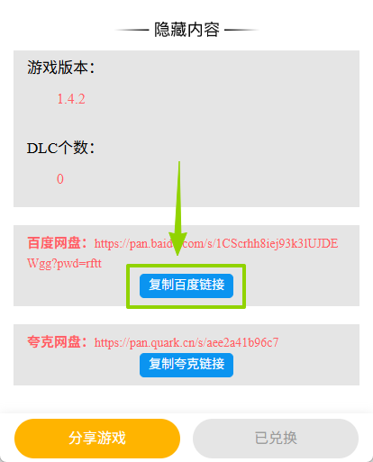 4.兑换成功,就能看到下载链接,直接点击按钮复制链接,然后打开对应的app即可下载游戏了:
