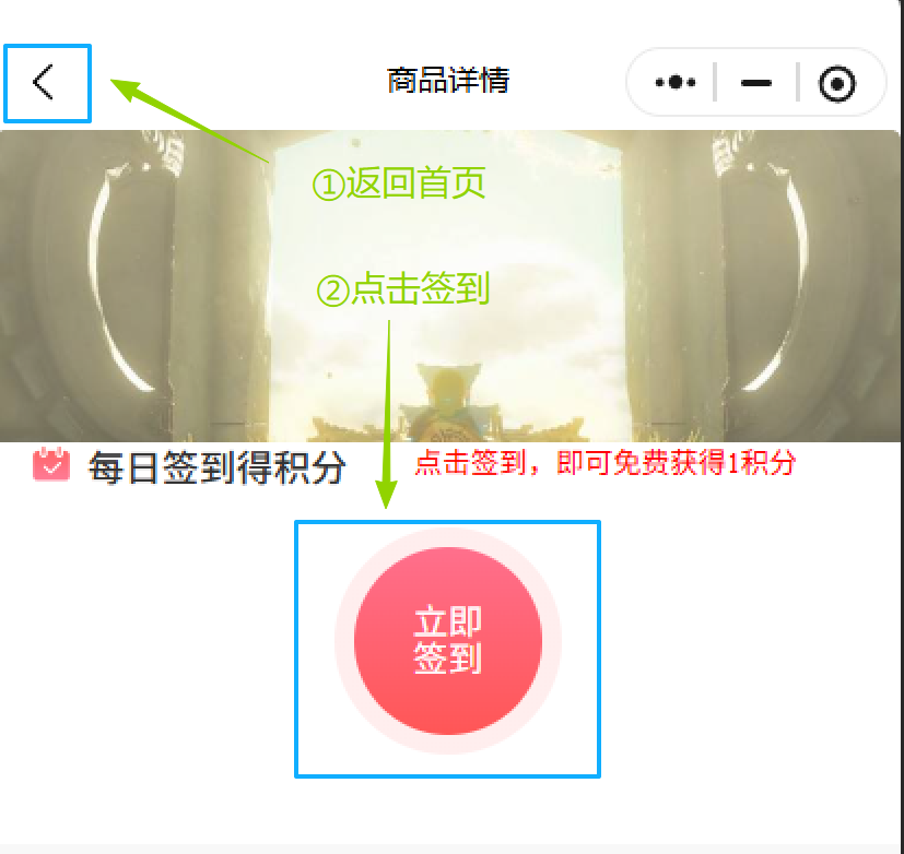 5.如果提示积分不足,按左上角的返回按钮,返回首页点一下签到就能获得积分了: